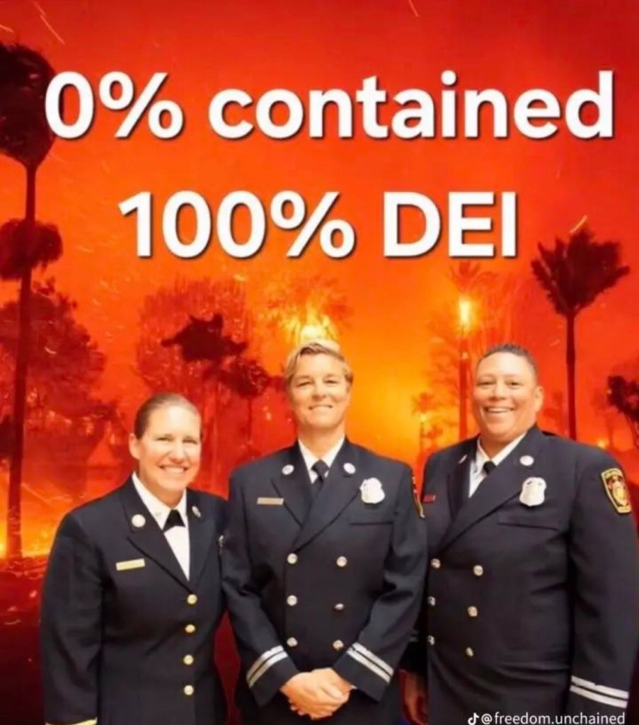 As always, nuance is required. The offhand remark by the Fire Chief is not proof that DEI contributed to the inadequate response. The disaster is decades in the making. LA’s leaders have known that the city was unprepared for catastrophic wildfires since the Bel Air Fire of 1961, which occurred when Karen Bass was a child and Gavin Newsom wasn’t alive. LA’s fire budget had actually increased by about $50 million compared to the last budget, reported Politico, Time, and the LA Times. And Newsom increased the CalFire budget after 2020 and increased land treated for wildfire prevention by 90,000 acres.