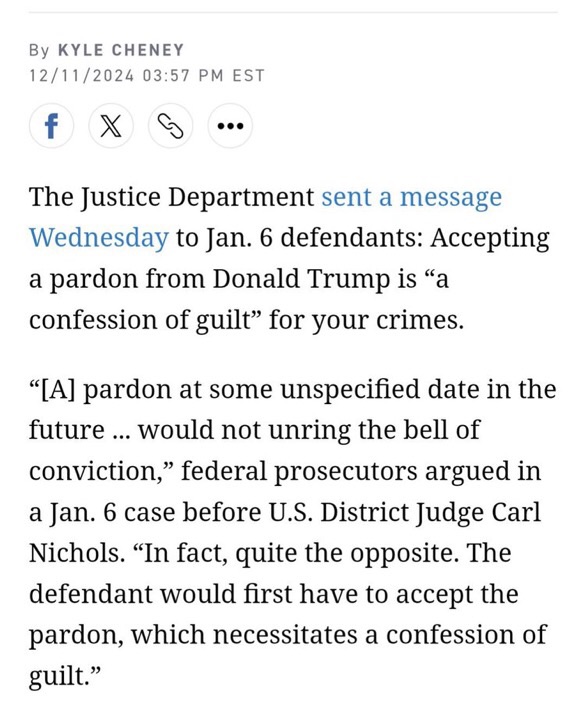 Biden’s pardon’s maybe his parting shot for the criminal cabal tht assisted him and then abandoned him for Kamala Harris. He might have just fingered the traitors with his pre-emptive pardons. You cannot pardon people who have not been charged. Very interesting developments.