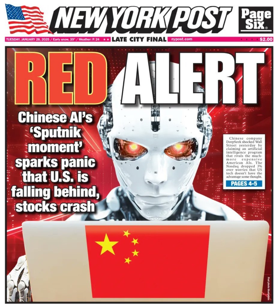 “There is only one topic on traders’ minds this morning that threatens to upend the multi-year AI bull trend driving chip stocks to record highs: the (extremely) cheaper Chinese DeepSeek response to OpenAI’s ChatGPT, as noted in an overnight piece titled “Goldman Asks If China’s DeepSeek is AI’s Sputnik Moment.”