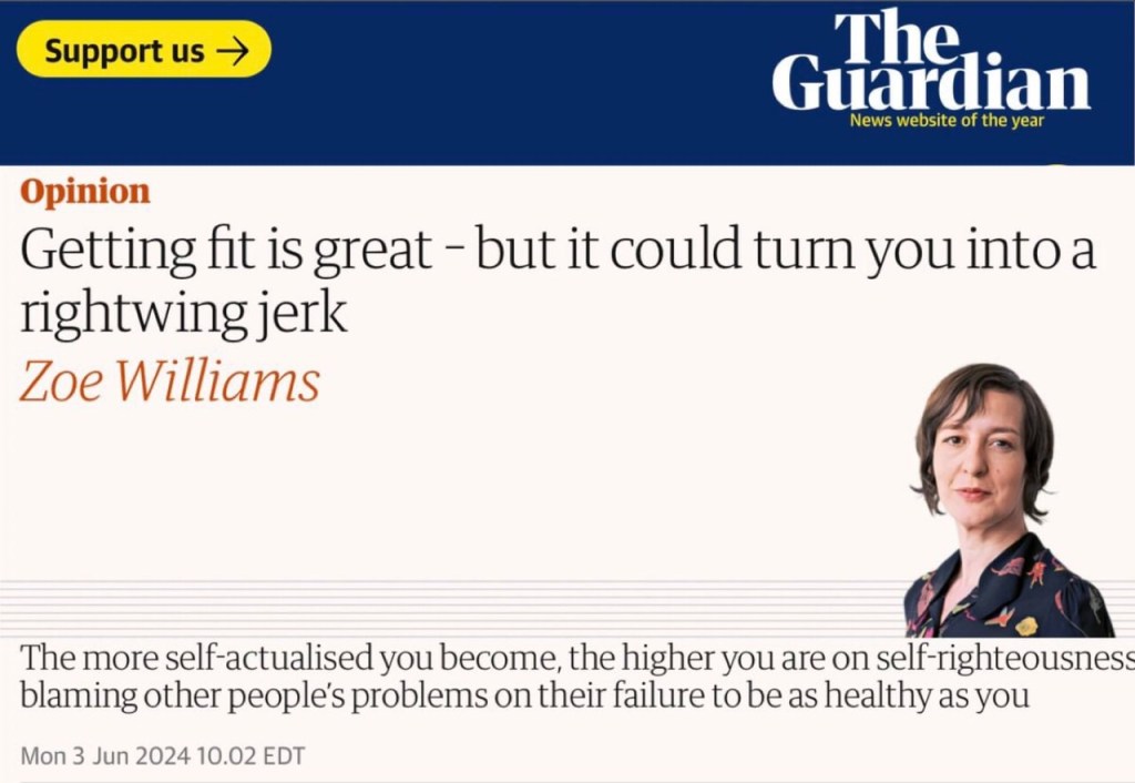 A liberal at the Guardian is furious about the fact that getting in shape makes a person more right-wing.